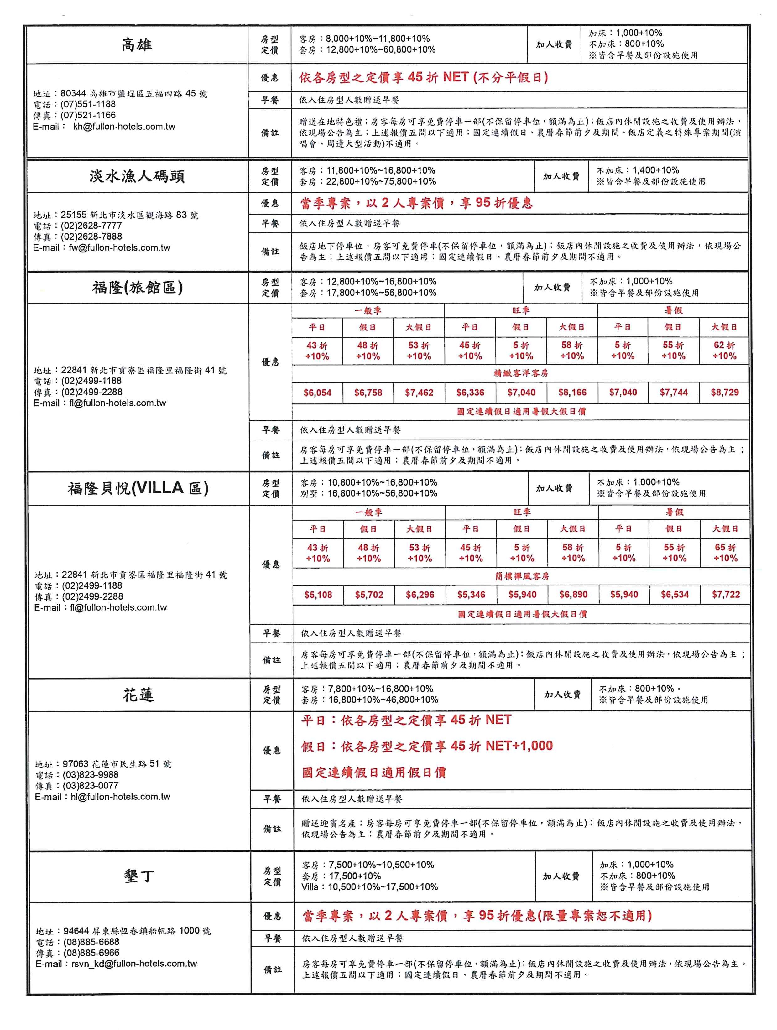 *不適用於跨年元旦、農曆春節、國定、連續假日等其他專案期間,且房型定價如有變動,不另通知。