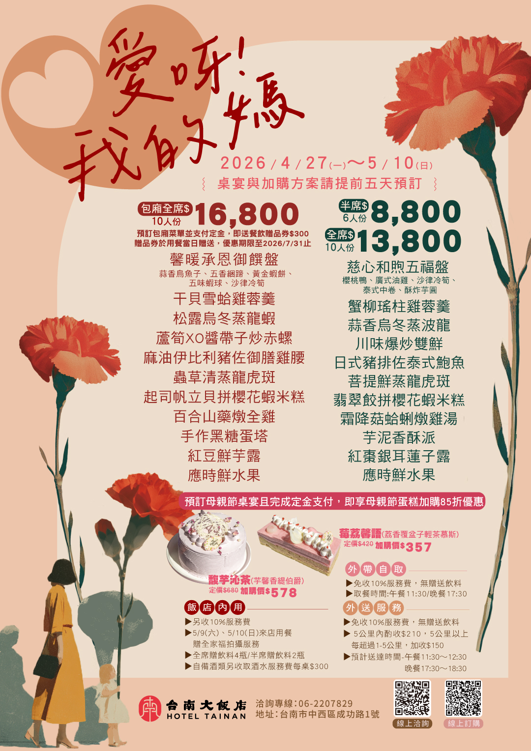 全教產福利通知 - 台南大飯店※母親節方案|中式宴席與歐式自助餐