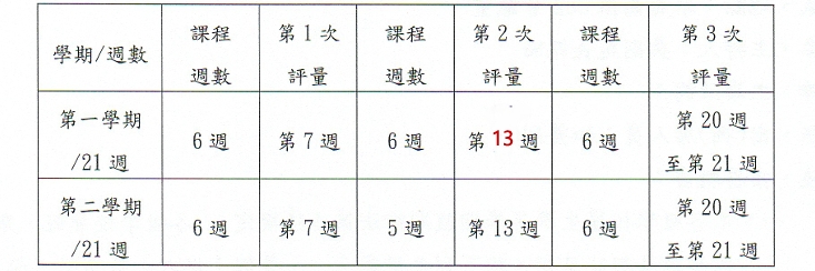 (一) 定期評量週規劃方式,分別擬定二次定期評量及三次定期評量之期程,以課程平均分佈於間隔週數規劃。